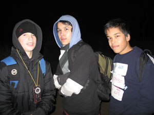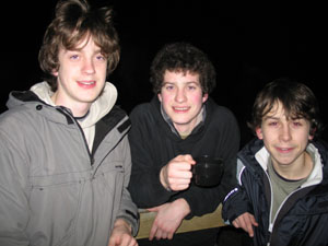 The PLs, Mark, Sam and Lewis, enjoy the hot cocoa at the end.